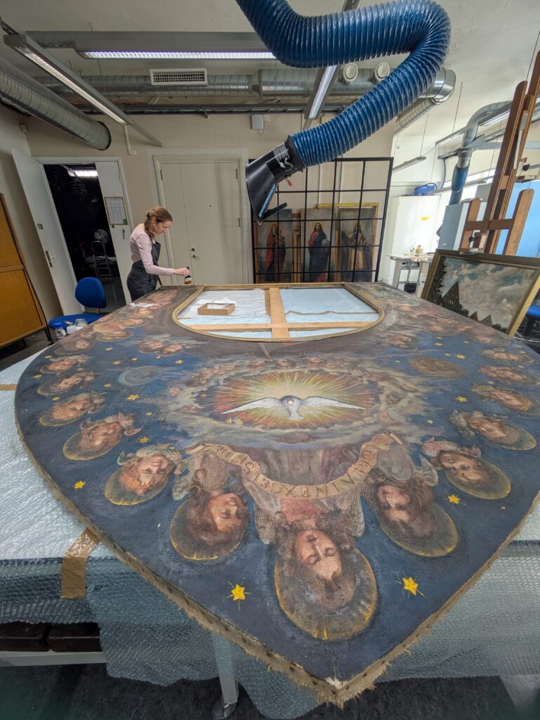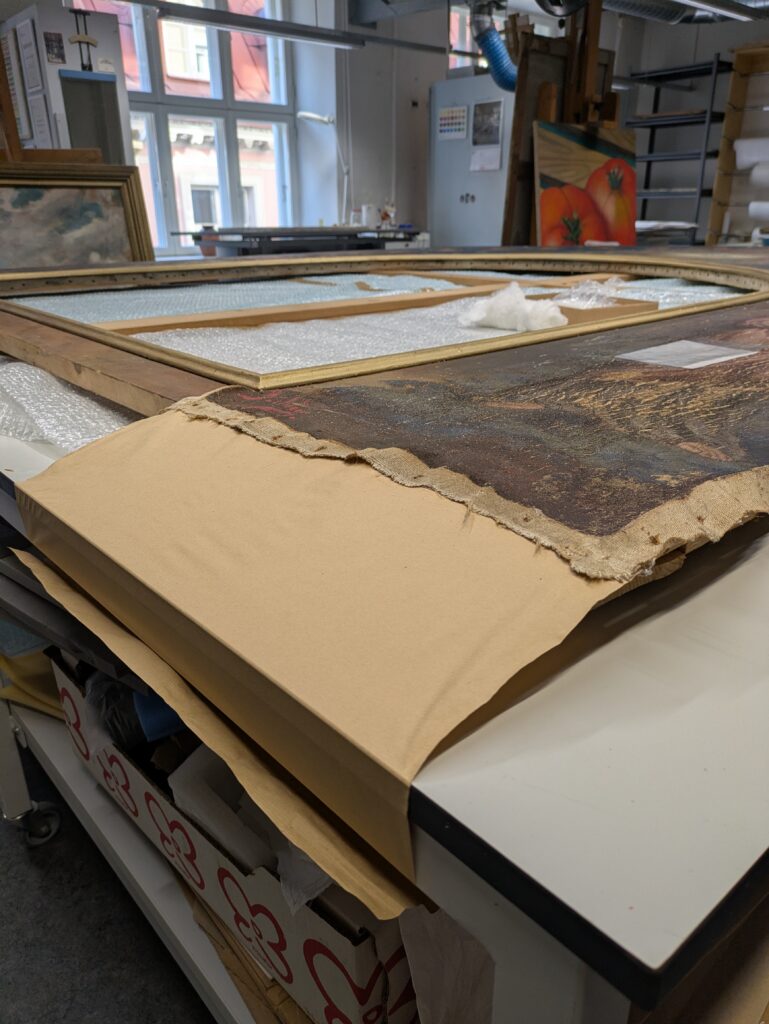Järgnevalt toome teieni ülevaate maali teekonnast Eesti Vabaõhumuuseumi Konserveerimis- ja digiteerimiskeskusesse Kanut. Täiendame uudist tööde käigus ja lisame jooksvalt uusi fotosid.