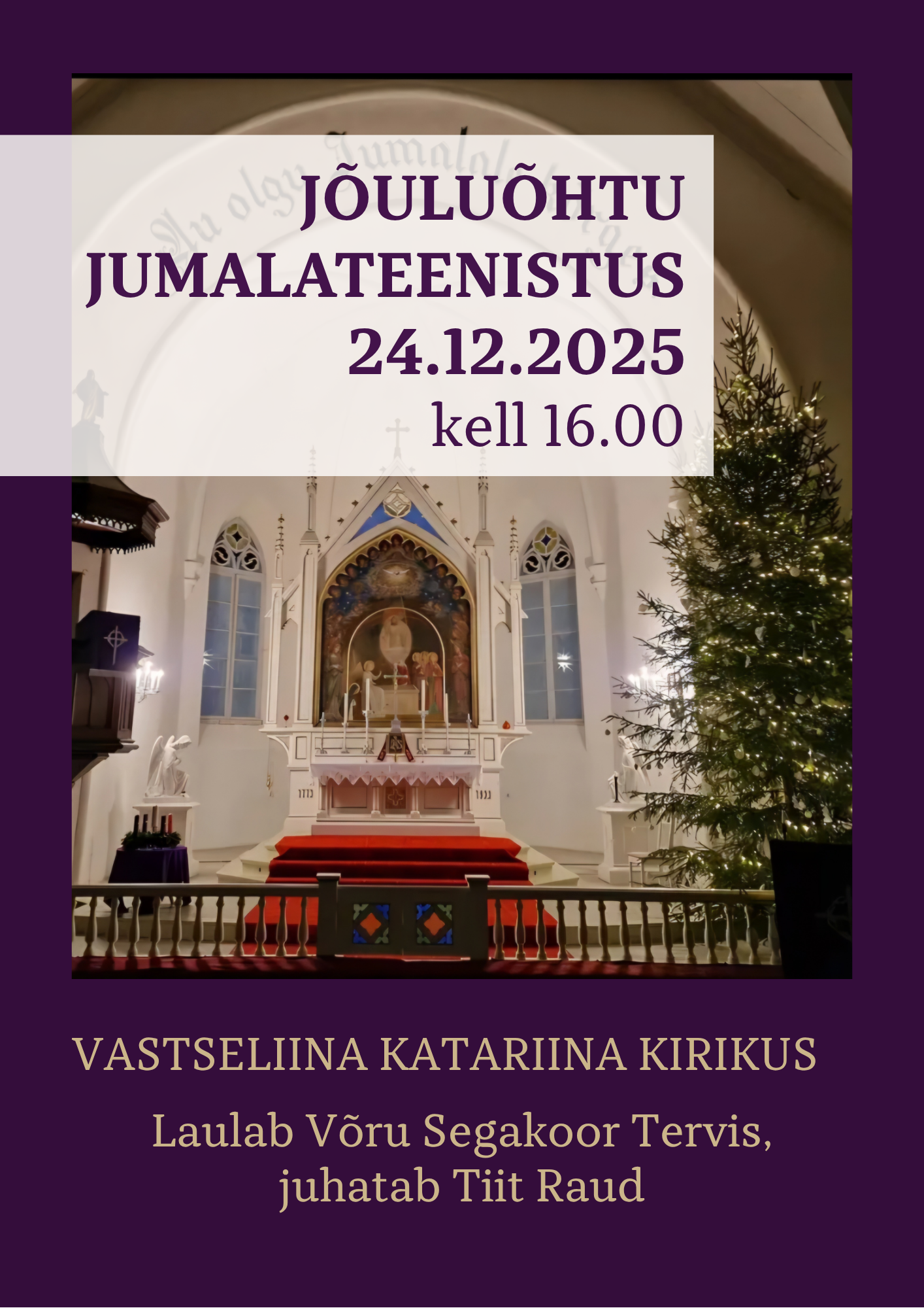 Vaata, ma kuulutan teile suurt rõõmu! Kaasa teenib Võru Segakoor Tervis, juhatab Tiit Raud. |